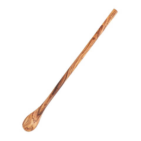 Cuillère à flûte en bois d'olivier artisanale agitateur en bois long naturel pour la cuisine cuisson café thé motif rond